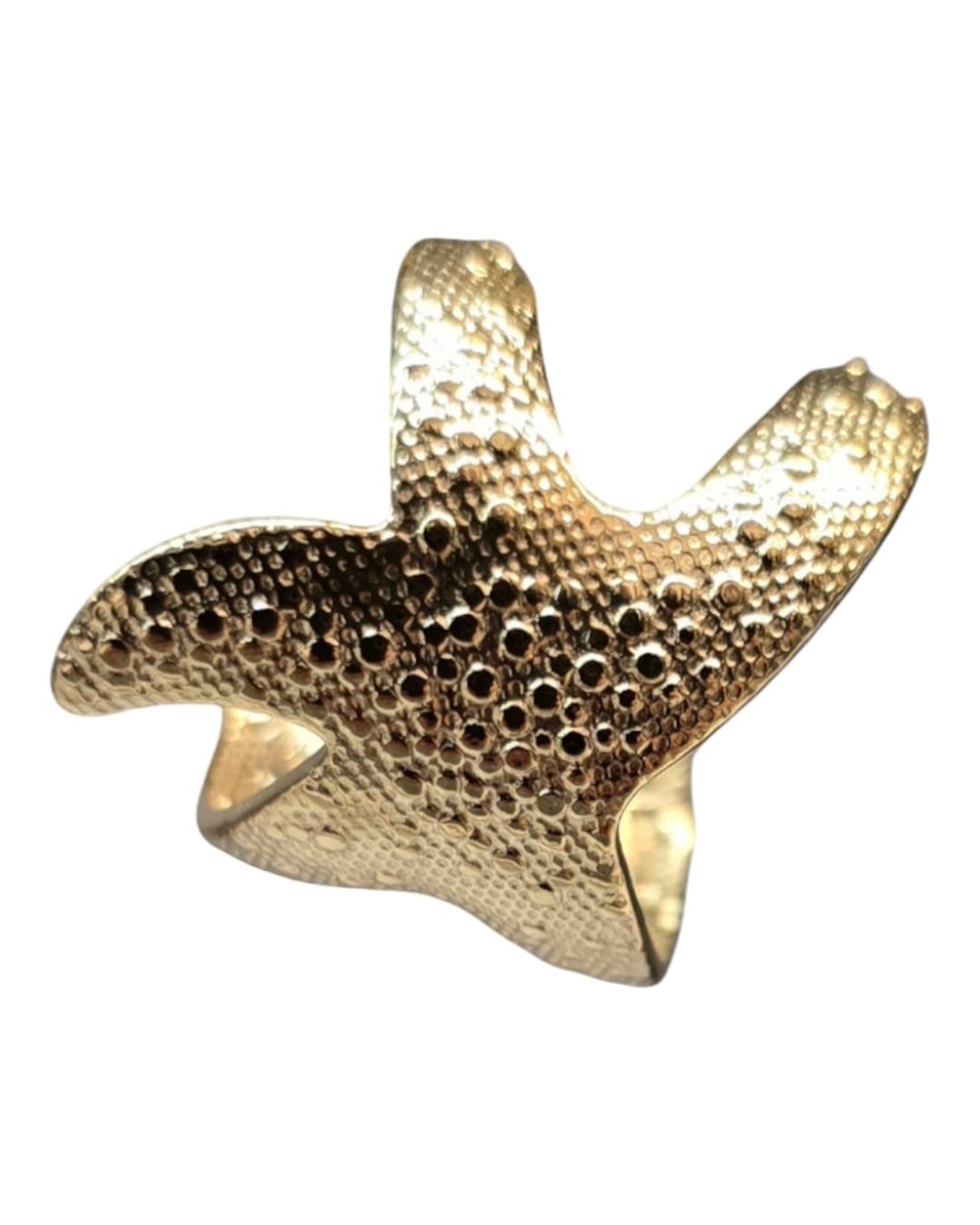 Esta joya representa una estrella de mar y su apariencia es elegante y estilizada. Fabricado con acero inoxidable y baño de oro de alta calidad, nuestro anillo garantiza una durabilidad excepcional y una resistencia impecable al desgaste diario. 100% Waterproof