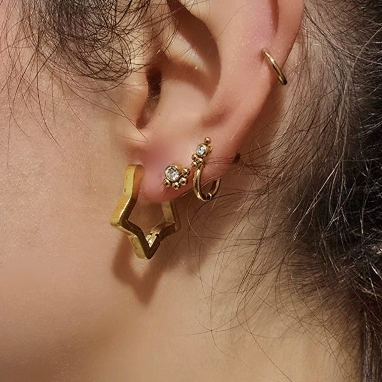 Estos pendientes de aro en forma de estrella ⭐ son lo mas top. Un modelo que no puede faltar en tu colección ✨