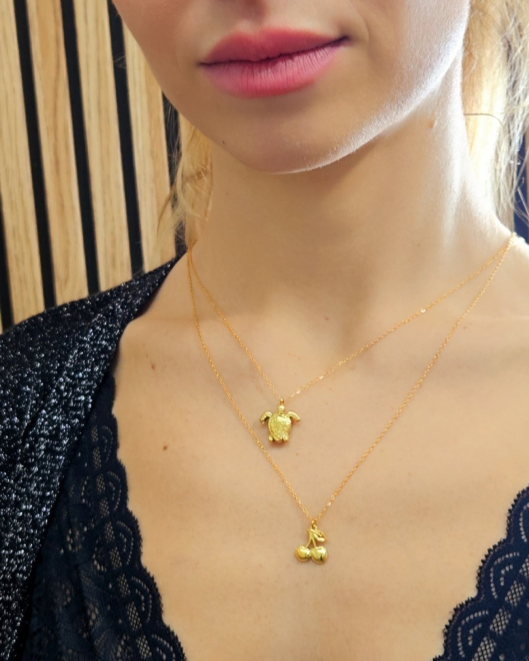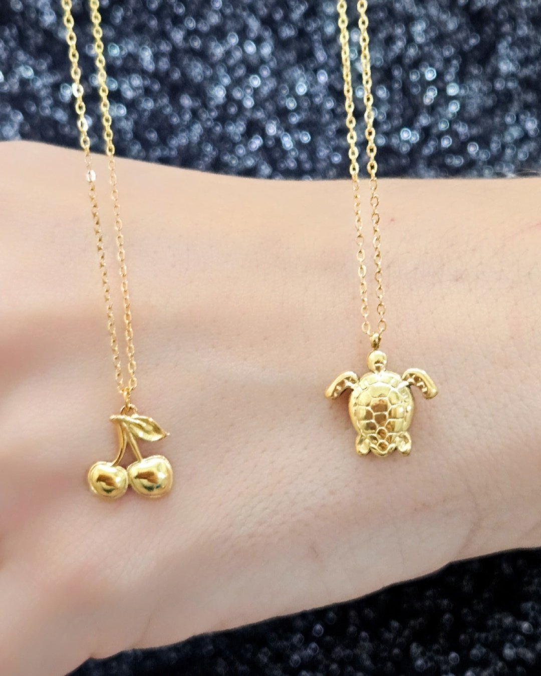 Este encantador collar está elaborado en acero inoxidable de alta calidad, revestido con un delicado baño de oro que le otorga un acabado brillante y sofisticado. Su punto focal es un adorable colgante en forma de cerezas 🍒, diseñado con detalles finos que realzan su forma natural.✨