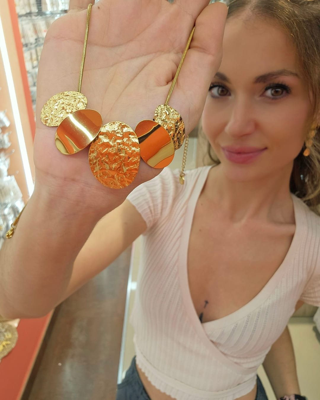 - El Collar Acero Cintia está diseñado con un baño de oro, texturizado.