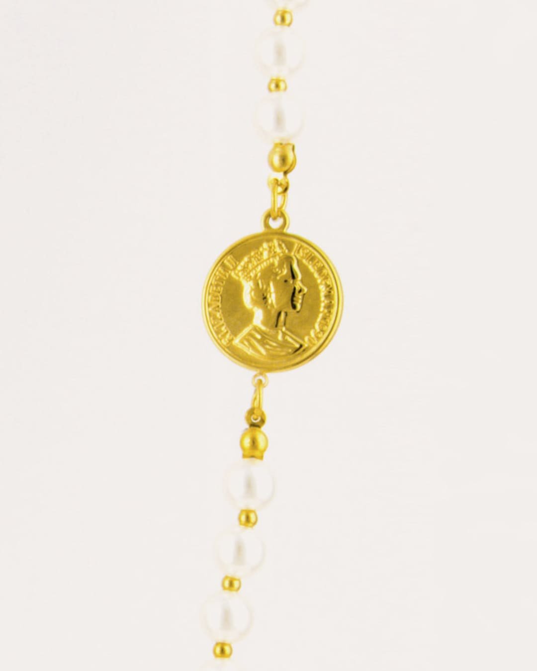 Este collar largo de acero con perlas, dos monedas doradas y dos formas geométricas es una pieza de joyería elegante y con elementos variados. El collar tiene una longitud más extensa, permitiendo que las perlas y los colgantes tengan un efecto más llamativo. A lo largo del collar hay bolitas perladas blancas clásicas, aportando un toque de elegancia atemporal. ste collar combina lo clásico con lo moderno, mezclando la atemporalidad de las perlas con la modernidad de las formas geométricas y el toque lujoso de las monedas doradas.