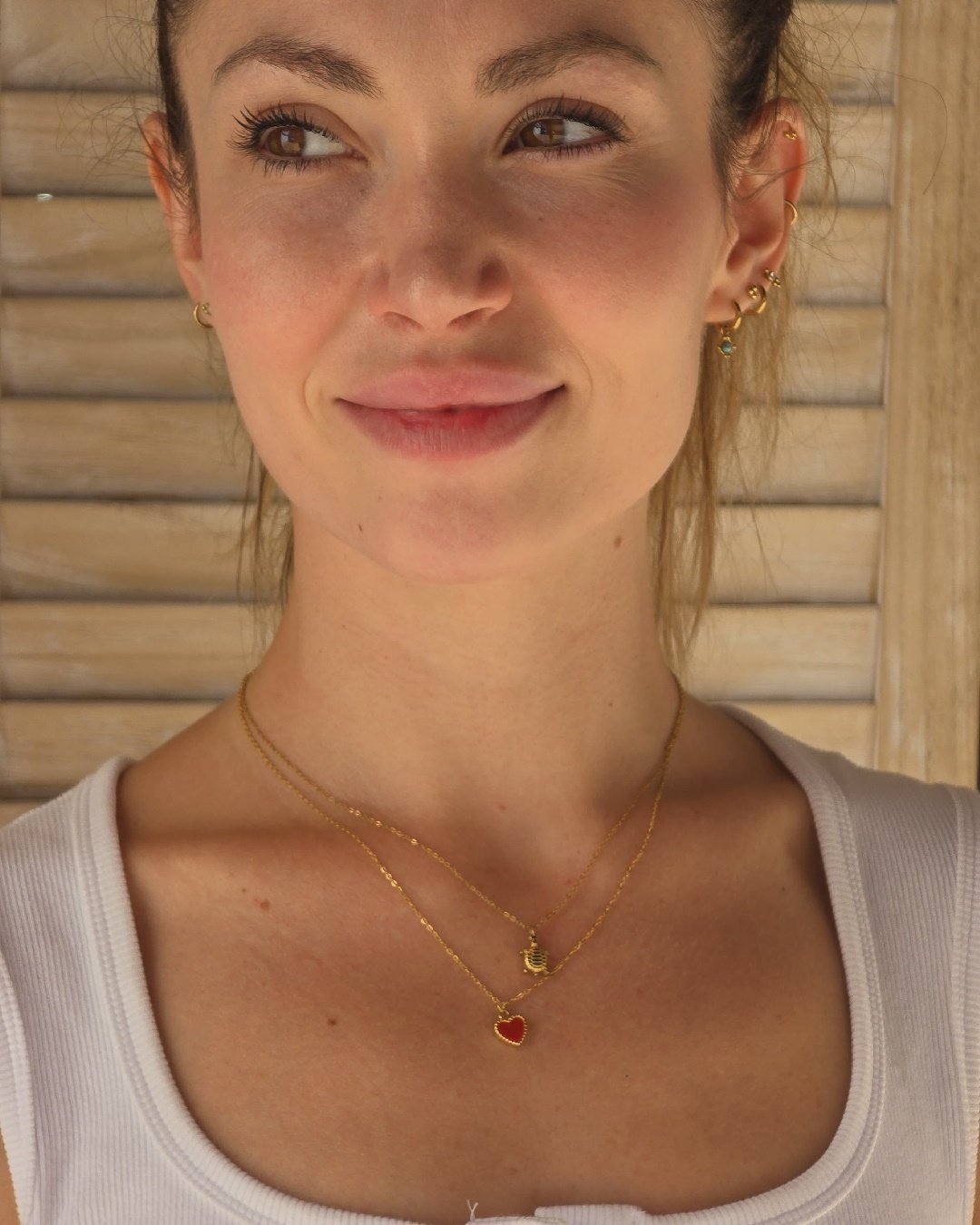 Esta joya puede tener un significado especial, como un regalo romántico o un símbolo de afecto. También puede ser un recordatorio de amor propio o un regalo significativo en ocasiones especiales como aniversarios, cumpleaños o simplemente como gesto de aprecio. En conjunto, una cadena de acero con un colgante en forma de corazón es una elección atemporal y versátil que puede complementar una variedad de estilos y ser apreciada en diferentes situaciones. Fabricado con acero inoxidable y baño de oro de alta calidad, nuestros collares garantizan una durabilidad excepcional. 100% Waterproof