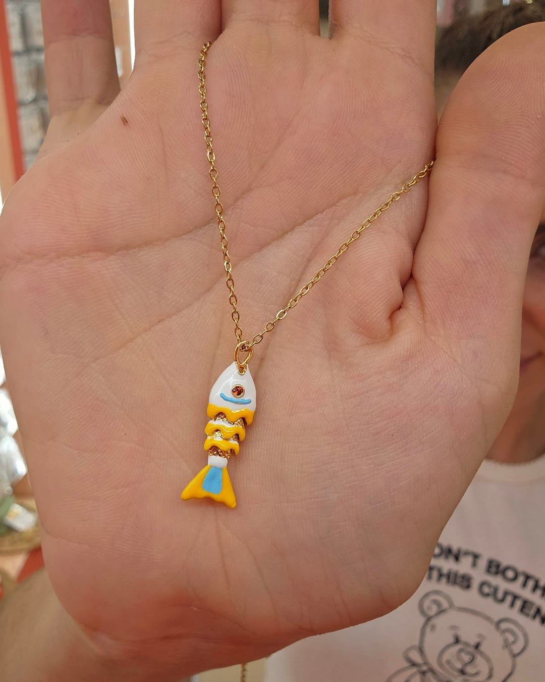 Un collar ligero, llamativo y lleno de personalidad, perfecto para quienes aman los accesorios diferentes y con estilo. 💛🐠