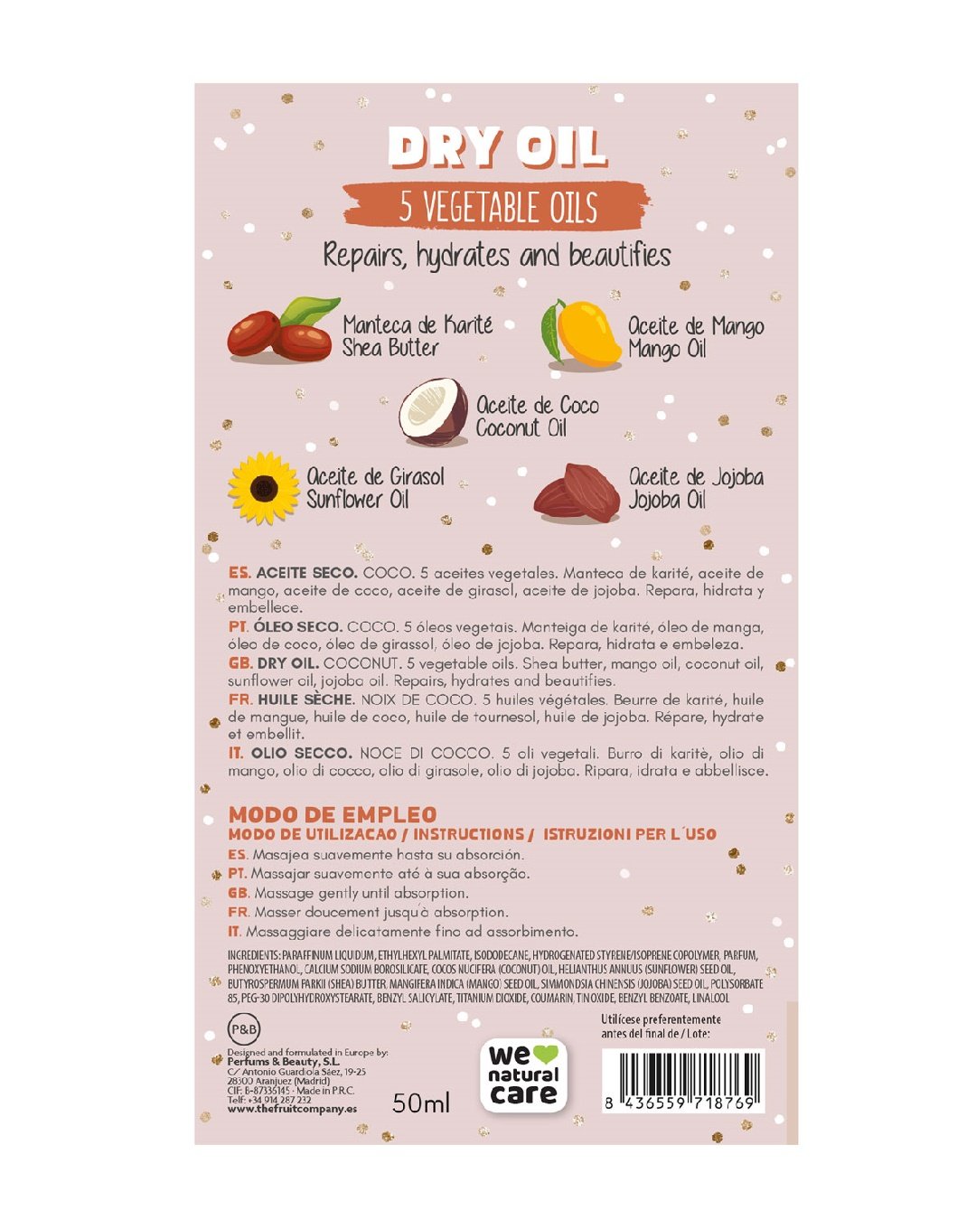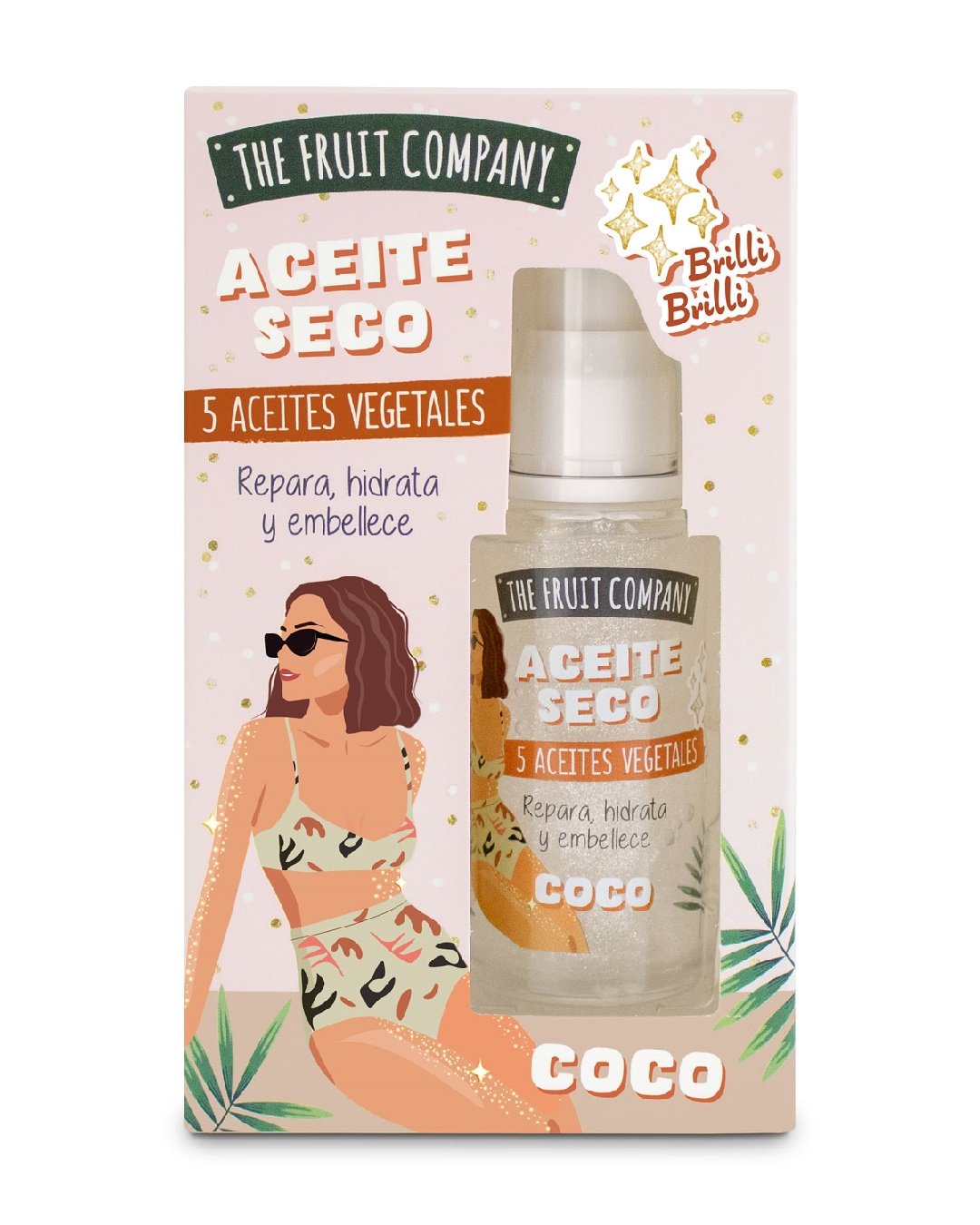 El Aceite Seco Coco The Fruit Company con un toque de BrilliBrilli que NUTRE, REPARA Y EMBELLECE. ¿Quién necesita un viaje a una isla tropical cuando tienes el mejor coco en tus manos? Se trata de una fórmula intensiva que fusiona 5 ácidos grasos vegetales de origen natural diseñada para regenerar las zonas más dañadas de tu piel y dejarla suave, radiante y elástica como nunca antes. Este aceite milagroso se elabora con un aroma atrevido y adictivo, una combinación perfecta de notas suaves a leche de coco y notas amaderadas. Y culmina con una luz sutil y sensual gracias al BrilliBrilli. ¡Todo un viaje sensorial!