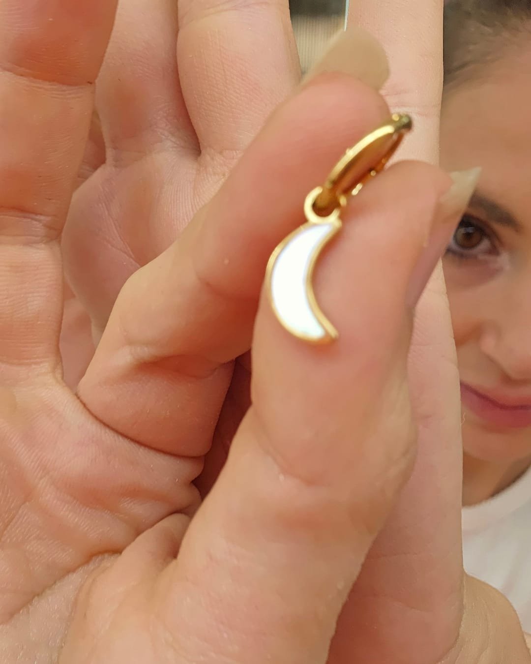 ✔️ Material: Acero inoxidable con baño de oro, hipoalergénico y duradero. ✔️ Cierre: Click, seguro y cómodo para uso diario. ✔️ Diseño: Aro con detalle de luna en nácar, ideal para complementar cualquier outfit, desde casual hasta elegante.