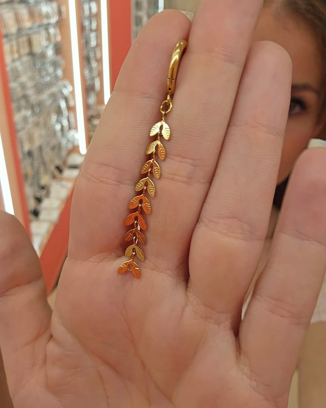 Dale un toque elegante y natural a tu look con estos pendientes colgantes en forma de ramita. Fabricados en acero inoxidable con baño de oro 18K, son resistentes al agua, no se oxidan ni cambian de color. Perfectos para cualquier ocasión.