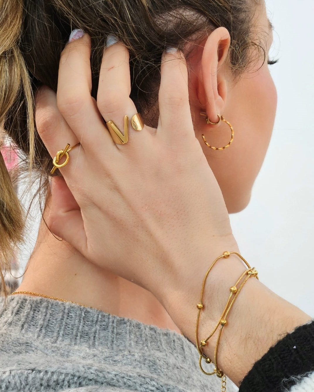 La pulsera consta de tres cadenas paralelas que corren a lo largo de la muñeca. Cada cadena lleva una serie de bolitas pequeñas intercaladas a lo largo de su longitud. Ofrece un estilo moderno y versátil. La combinación de cadenas y bolitas crea un diseño llamativo y a la vez refinado. Fabricado con acero inoxidable y baño de oro de alta calidad, nuestros collares garantizan una durabilidad excepcional. 100% Waterproof.