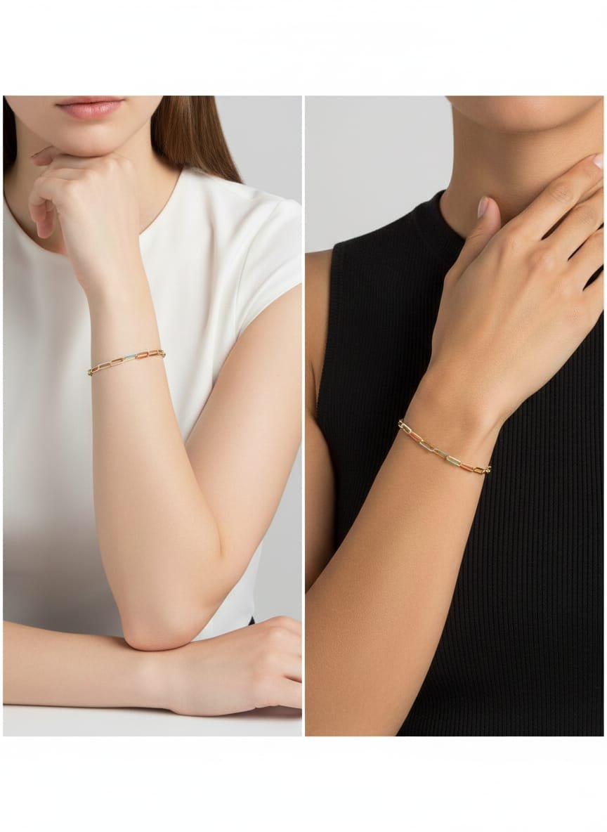 Para mantener la pulsera en buen estado, evita exponerla a elementos que puedan dañar los eslabones de colores.